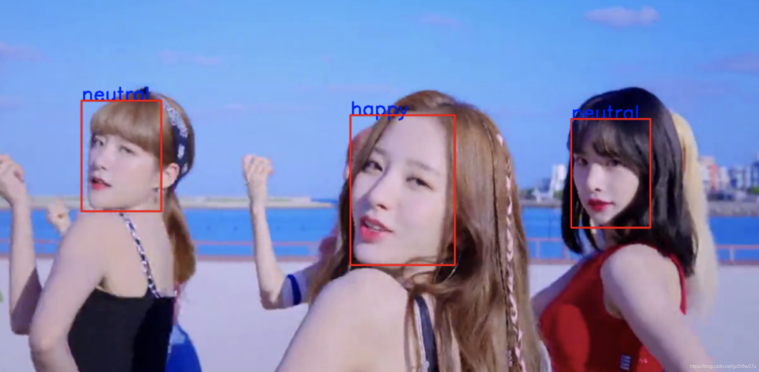 (np.int32(right), np.int32(bottom)), (0, 0, 255), 2, 8, 0)打开摄像头或者视频文件,运行人脸表情识别的: