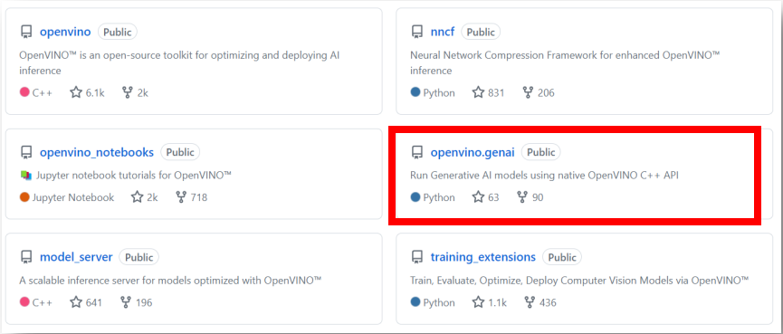 git clone --recursive https://github.com/openvinotoolkit/openvino.genai.gitcd openvino.genai