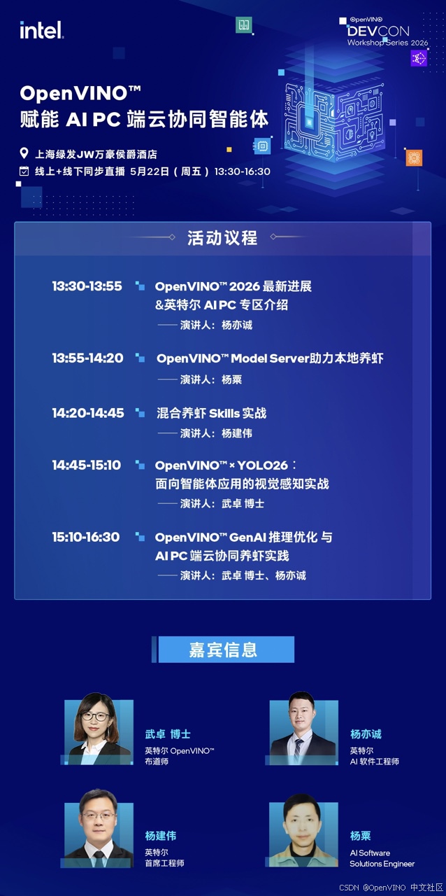 5.22上海|OpenVINO™ DevCon线上线下同步开启,赋能AI PC端云协同智能体——直击龙虾智能体实战